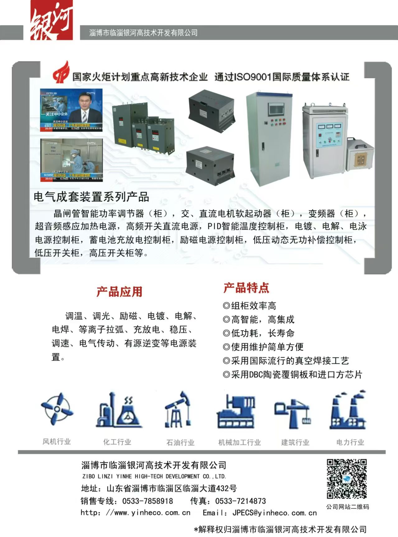 主要產(chǎn)品:DBC陶瓷覆銅板(190.5×138mm的母板或蝕刻線路的單、雙面成型零件)、大功率LED陶瓷覆銅散熱基板、聚光太陽(yáng)能光伏陶瓷覆銅散熱基板、射頻電路用陶瓷覆銅板;晶閘管智能控制模塊、恒流恒壓控制模塊、除鐵器模塊、MTC、MTX、MTG、MDC、MDS、MDQ、SSR(固態(tài)繼電器)、晶閘管移相觸發(fā)控制板、恒流恒壓控制板、雙閉環(huán)直流調(diào)速控制板、蓄電池充放電控制板等;承接各類控制柜(加熱電源控制柜、直流調(diào)速屏、交流或直流電機(jī)軟起動(dòng)控制柜,充電電源控制柜、電鍍或勵(lì)磁電源控制柜等)。